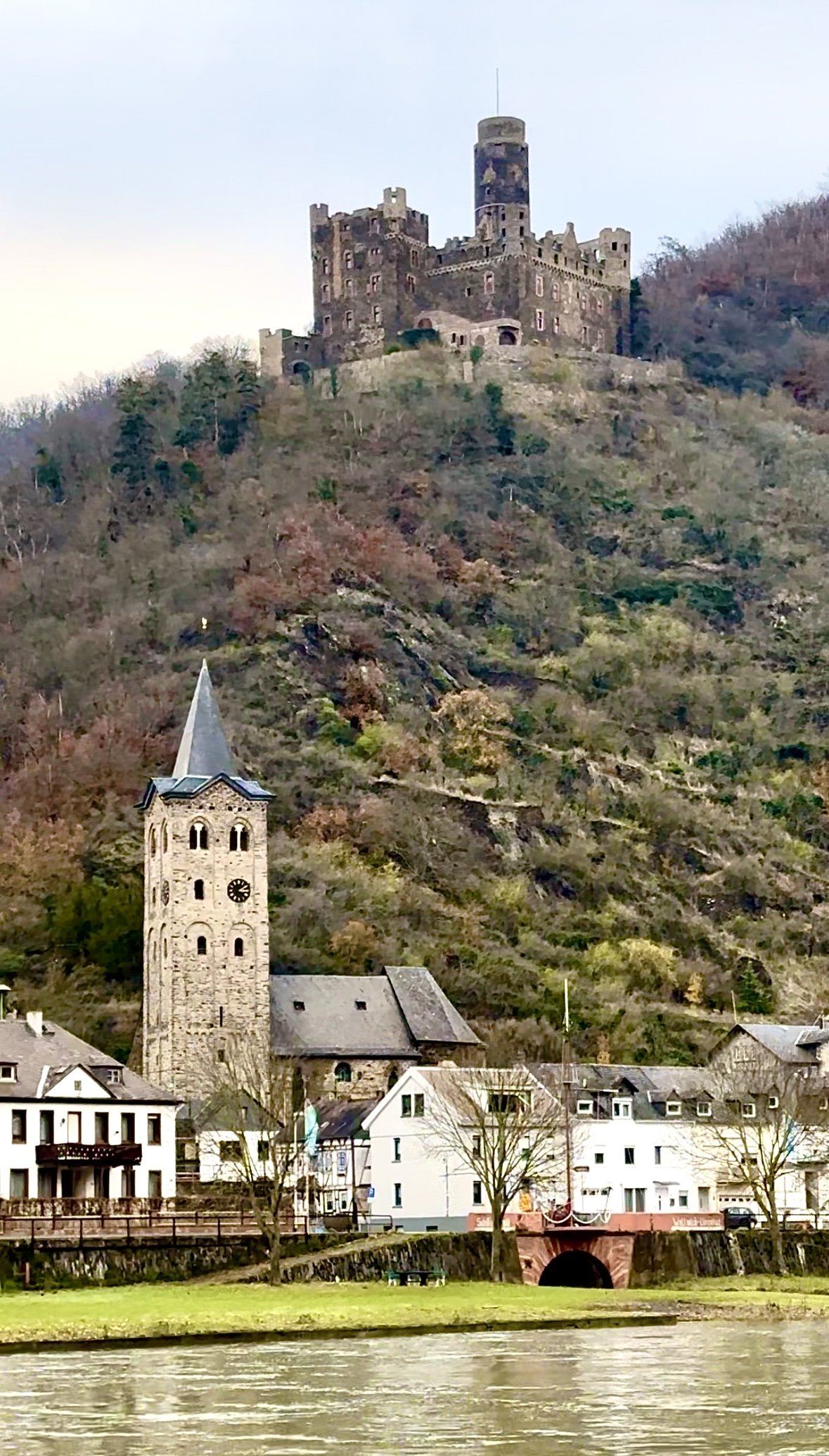 We stopped in Lahnstein in the evening for a tour of the Burg Lahneck Castle. It’s a beautiful medieval castle atop a hill overlooking the scenic Rhine River and dates back to the 13th century. It has served as a fortress, a residence for nobility, and even a prison.